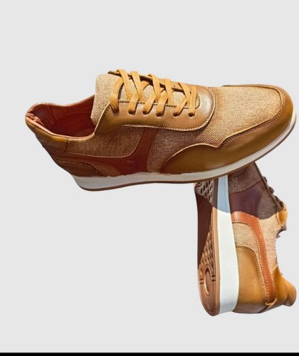 Une chaussure chic et confortable, mélange de cuir et de tissu, légère avec une semelle en gomme pour un style raffiné au quotidien.